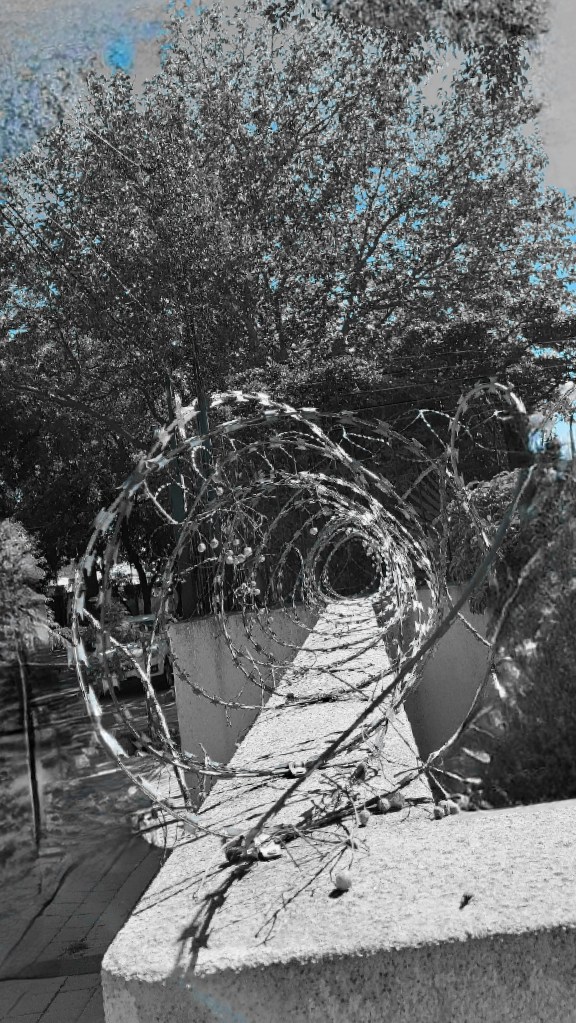 Con solo levantar la vista se revela, con verdadero desencanto, un muro de púas y cercos eléctricos, que se ufanan en prodigar.