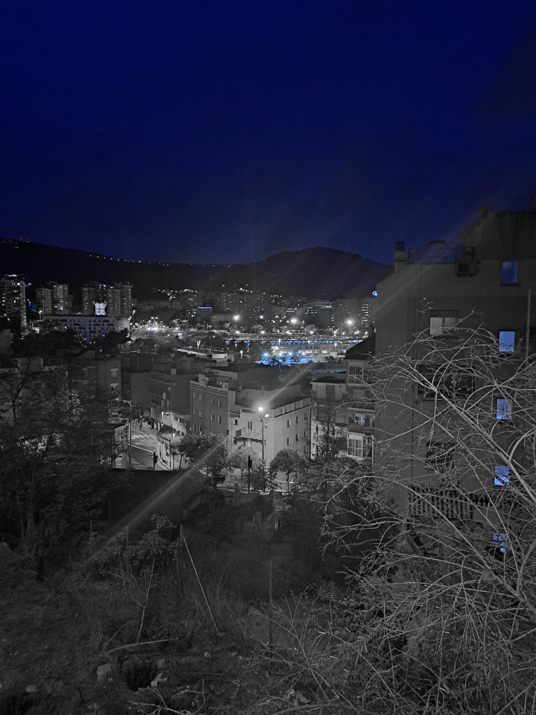 La ciudad, tan enorme como impersonal, se despliega con una luz diferente, más azul, más fría.