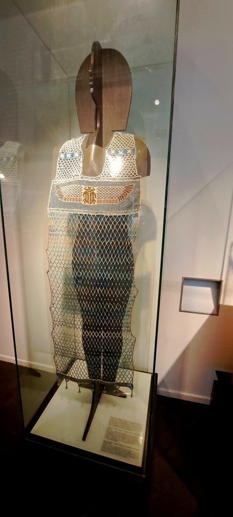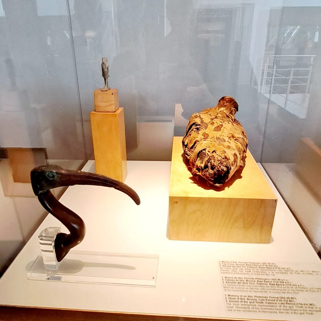 También un ibis momificado o un vestido de red de cuentas de cerámica.