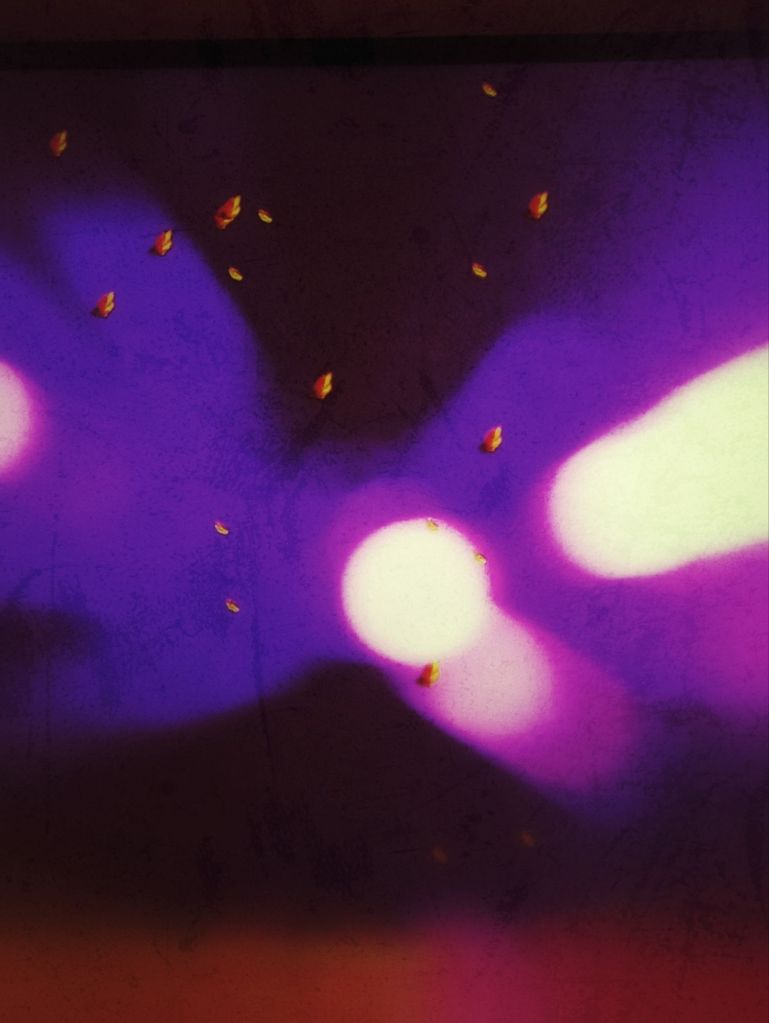 Observo que existen, en ella, esas chispas-esquirlas que me recuerdan a una antigua visión del infierno donde las almas flotan ingrávidas como brasas incandescentes.