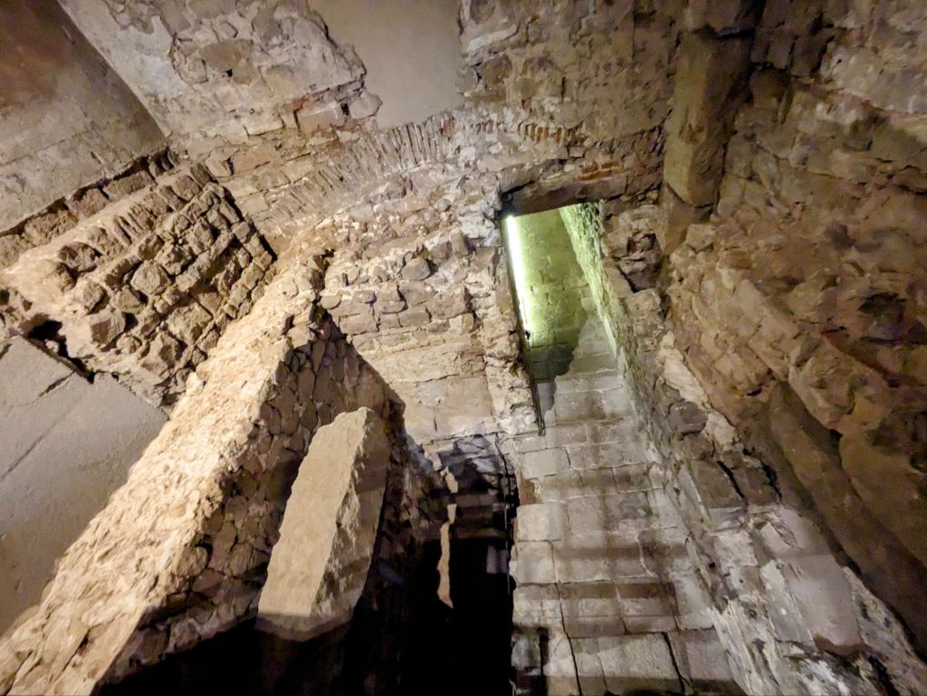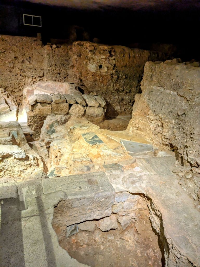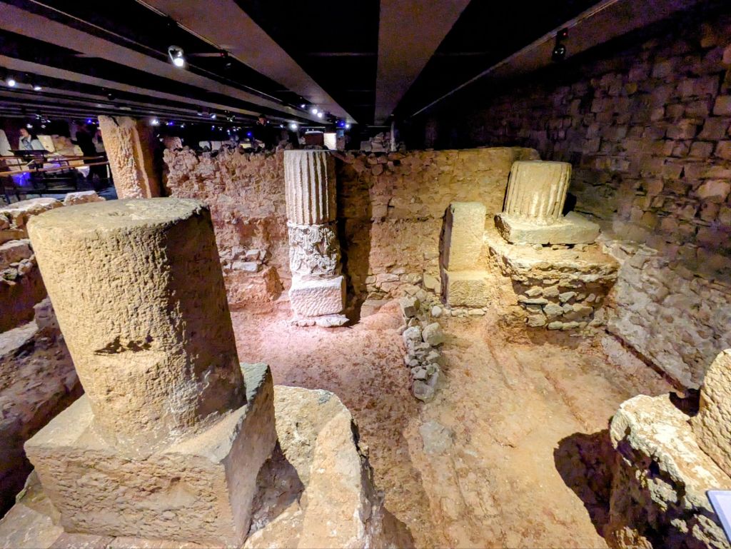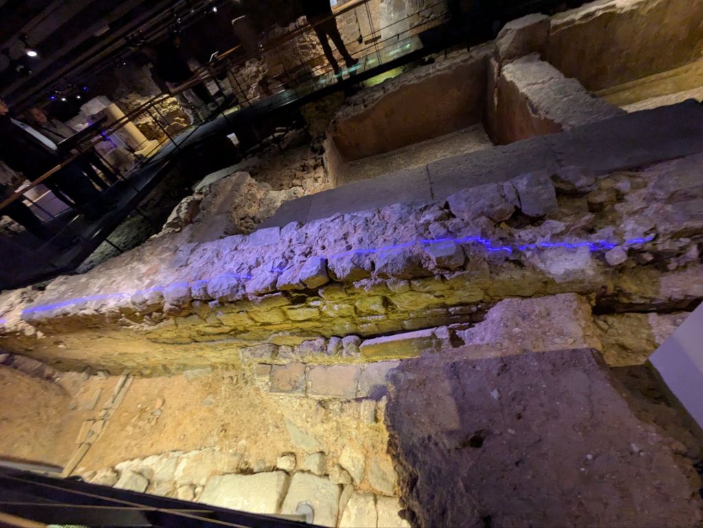 Espacio público de la Muralla de Barcino, años 15 y 10 ac, la ciudad romana encontrada debajo de la actual Plaza del Rey de Barcelona.