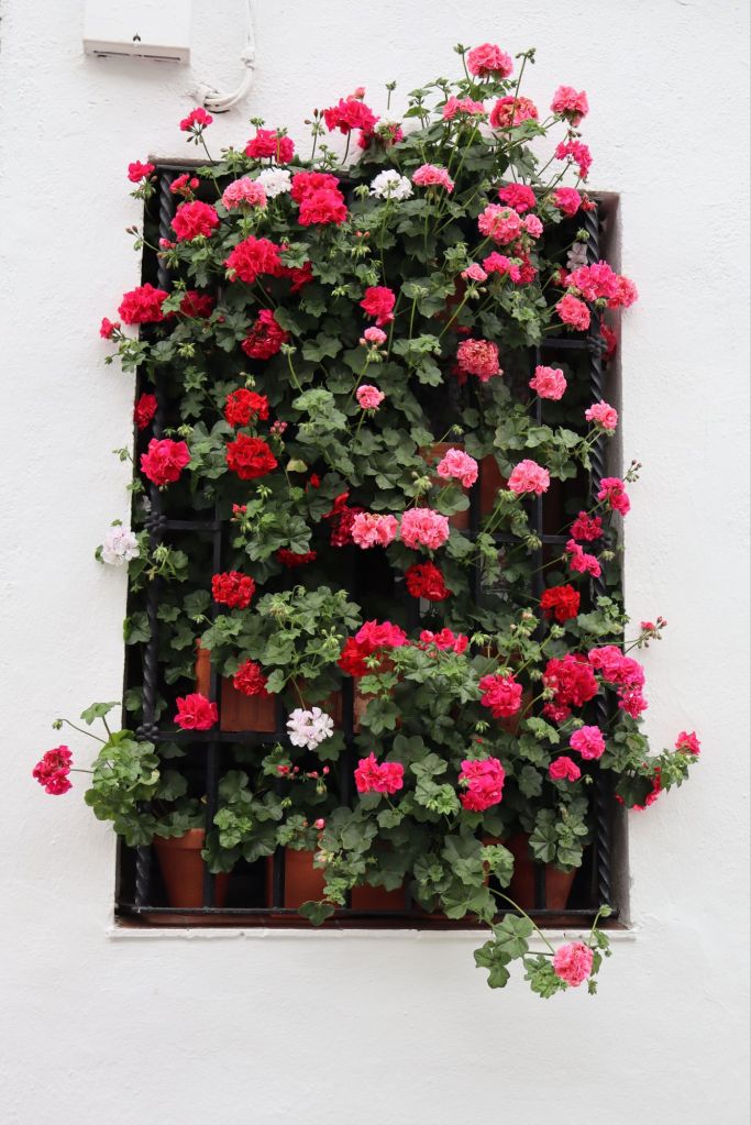 Las ventanas son un primor, entre rejas y postigos, el color y el aroma de los malvones y las verbenas es inolvidable.